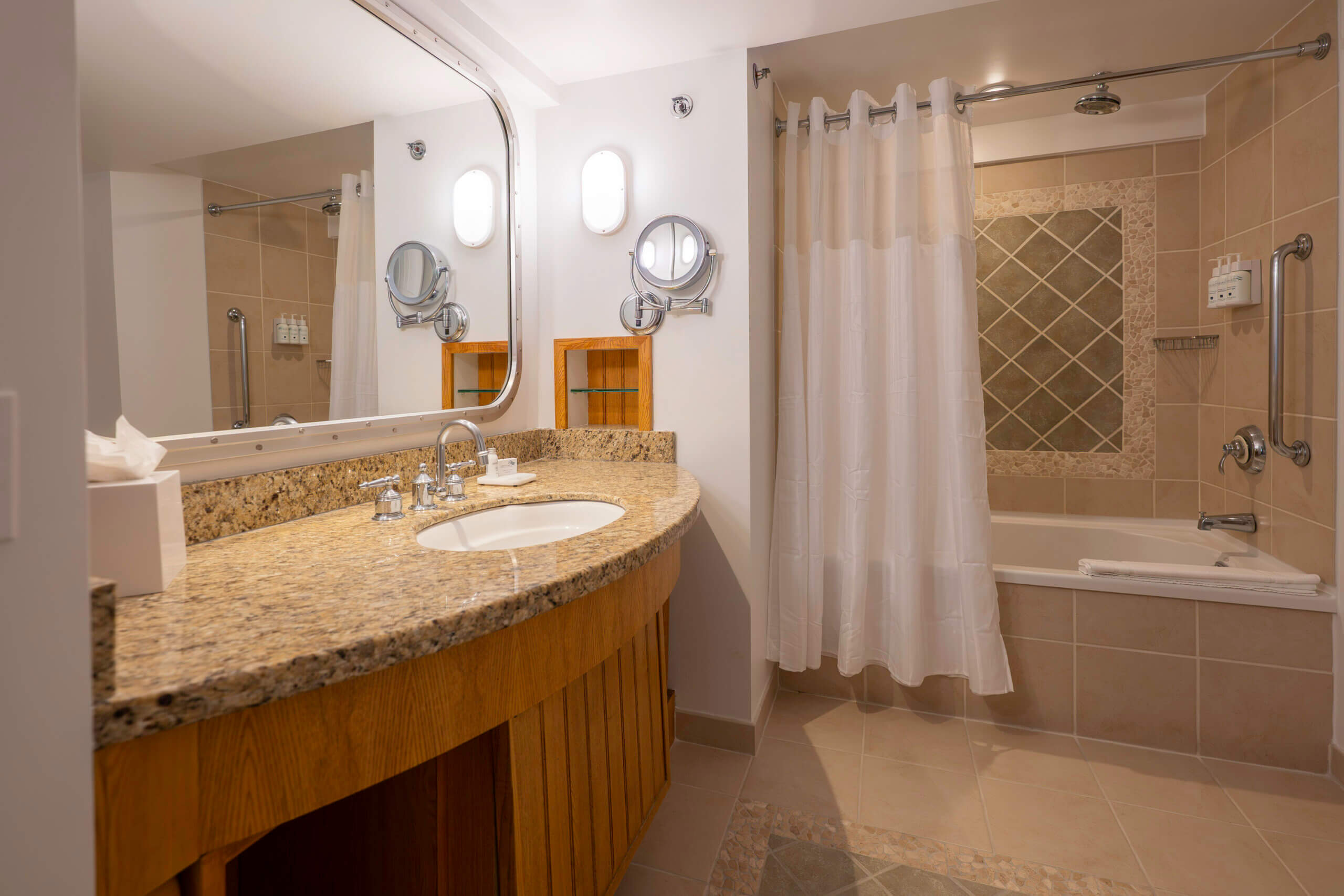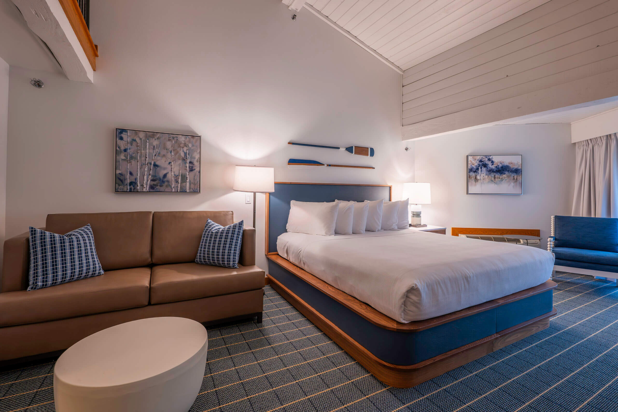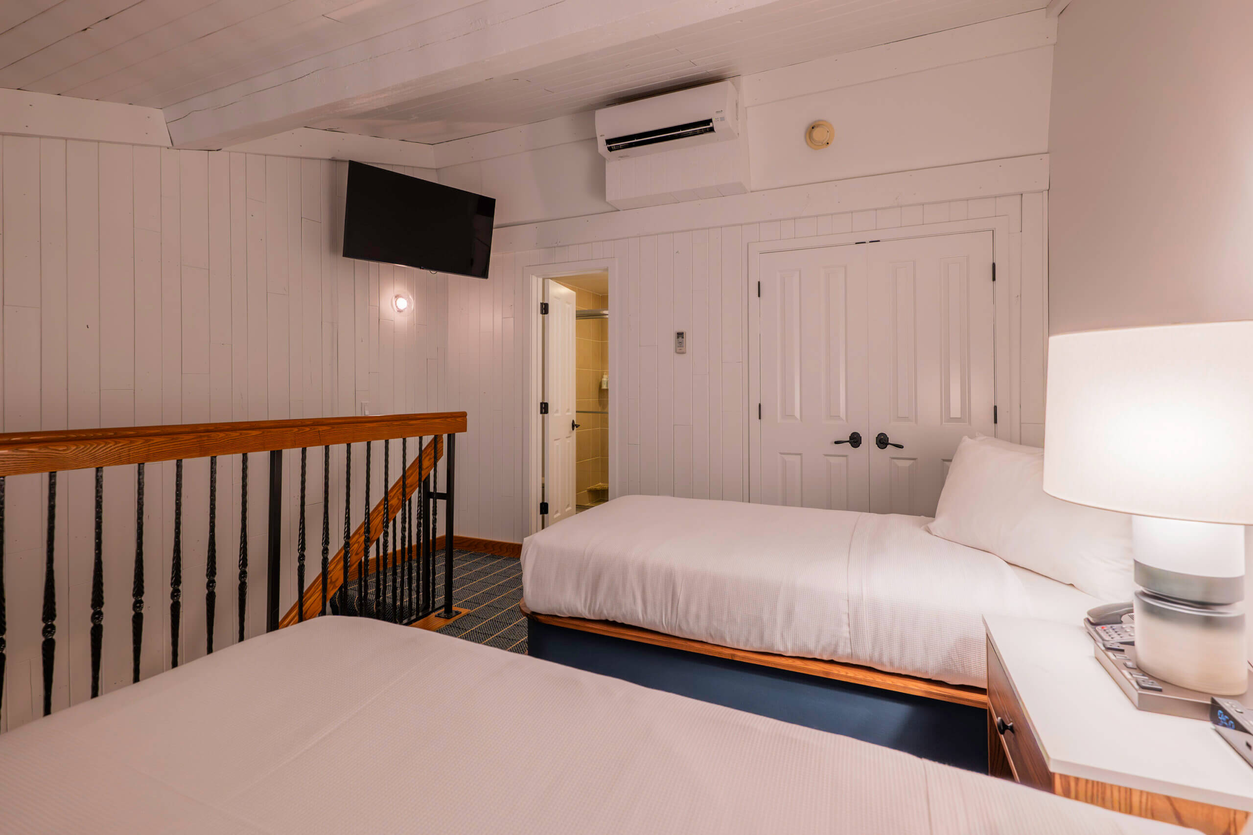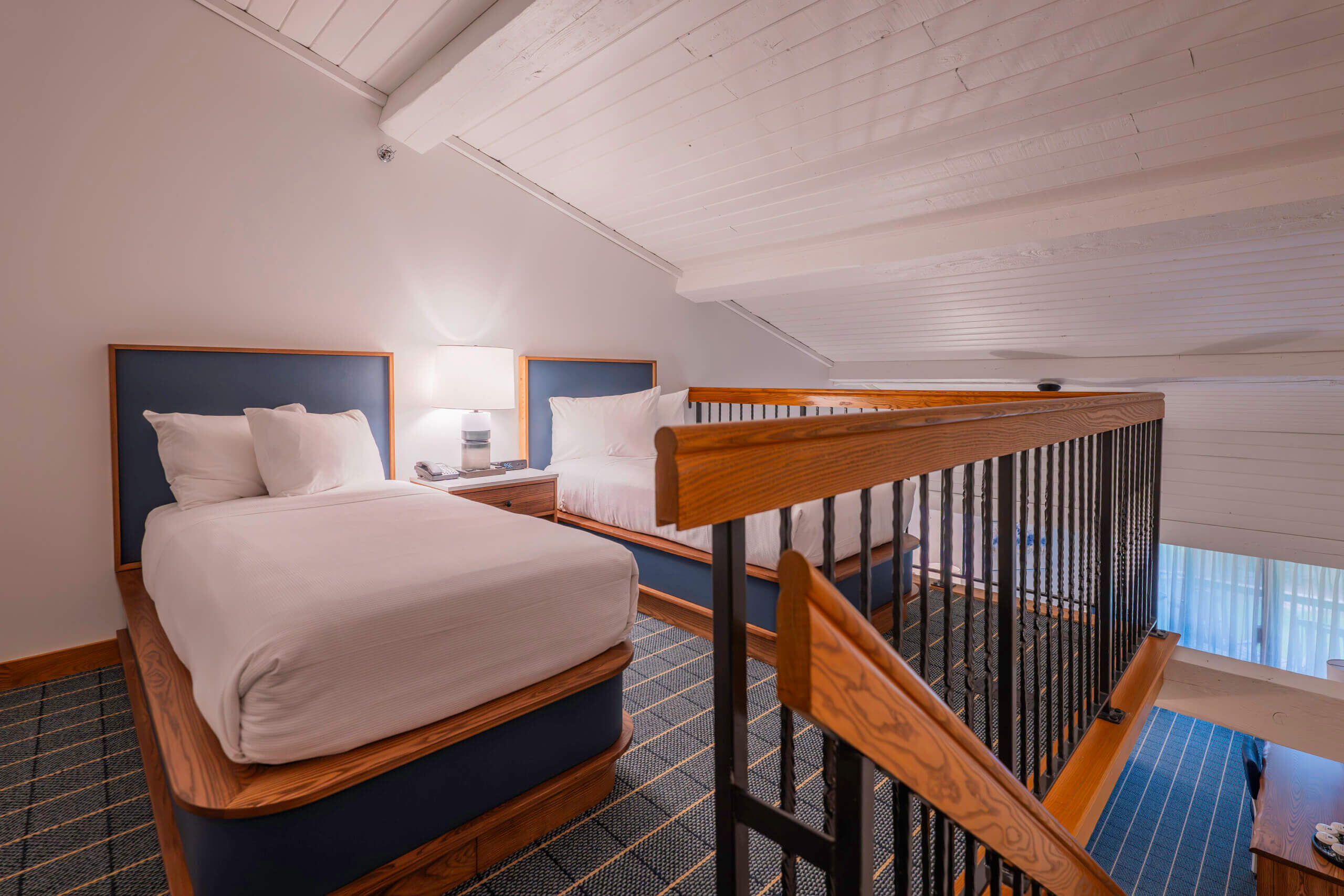 Set within various room layouts ranging from 600-768 square feet, these loft units feature a private balcony, spacious King-sized bed, a deluxe granite bathroom featuring spa bath products from our own award-winning Calladora Spa along with a Kohler Bubble Massage tub and shower and sitting area along with Double Sleeper Sofa on the main floor. Housed within the loft space, you will find an additional two twin beds along with a full bathroom, which is perfect for families or large groups.