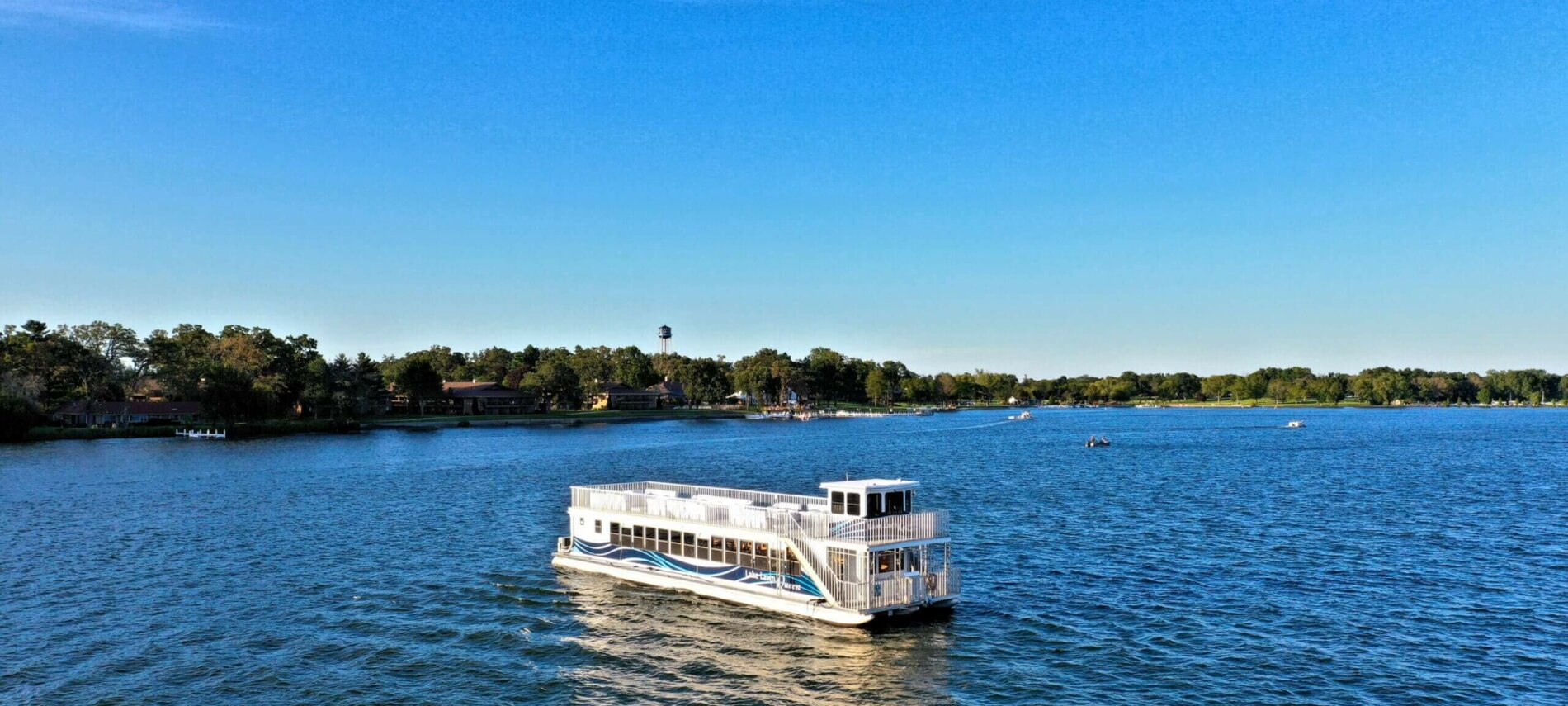 Make your group event spectacular! Charter Lake Lawn Resort’s two-level 76-foot tour boat for a truly memorable lake excursion. The Lake Lawn Queen is perfect for corporate outings and meetings, cocktail and dinner receptions, private events, and more. It has a beautiful open-air top deck and a climate-controlled enclosed lower level, providing comfortable seating options and unobstructed lake views.