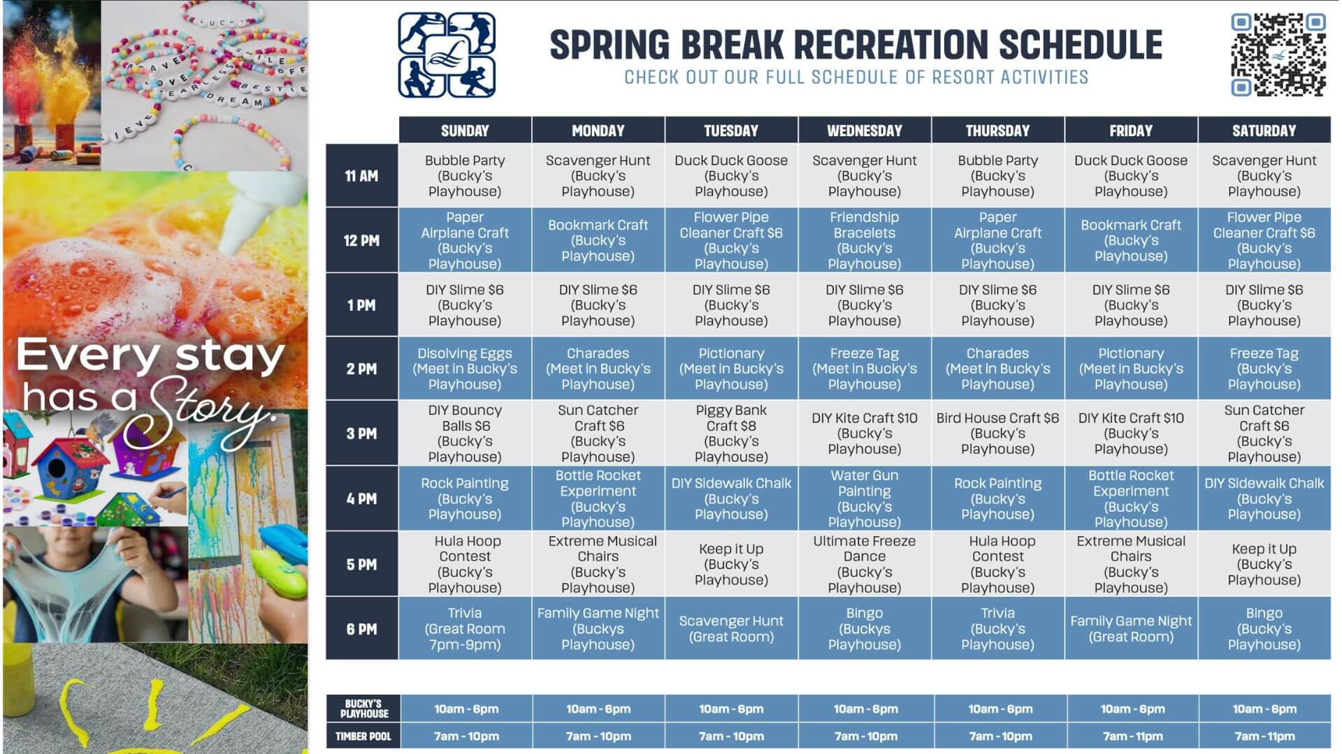 Celebrate Spring Break at Lake Lawn Resort with a week filled with family fun, lakeside relaxation, and activities for all ages. From hands-on crafts and scavenger hunts to special experiences in Bucky’s Playhouse, every day offers something new to enjoy together. Make your spring getaway one to remember!