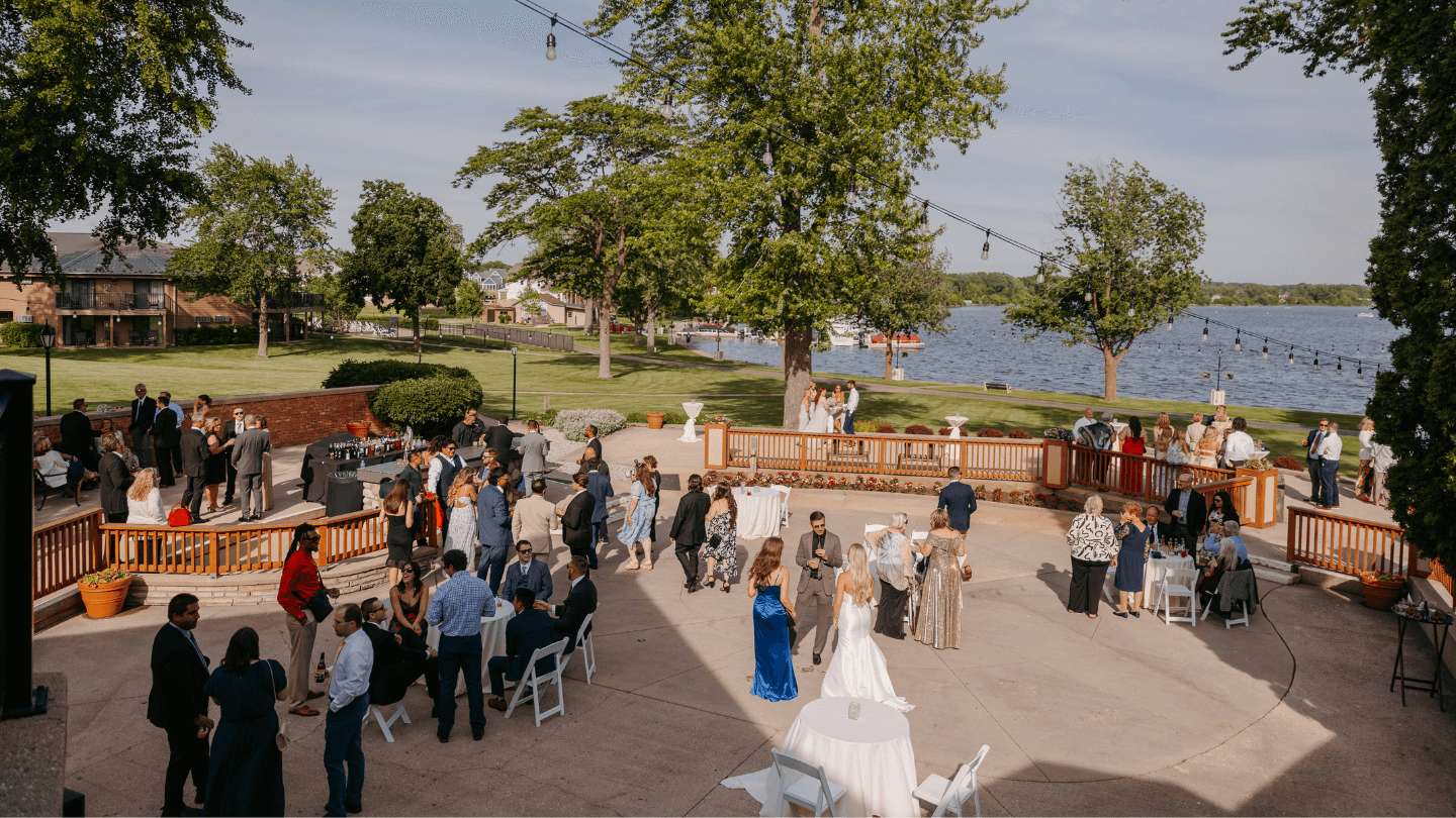 The Lakeview Terrace offers an outdoor cocktail reception area for up to 300 with wonderful views of Delavan Lake and the lakefront lawn.
